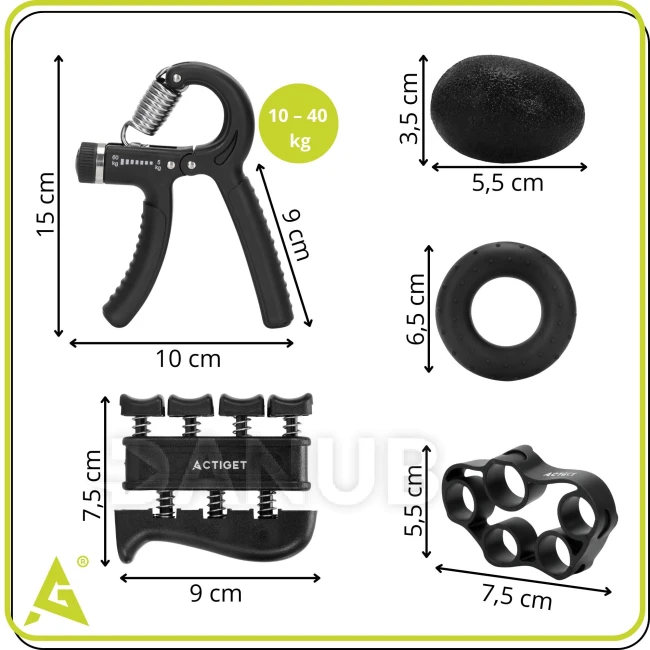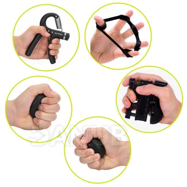 - Sada obsahuje 5 doplňků pro cvičení prstů a úchopu.