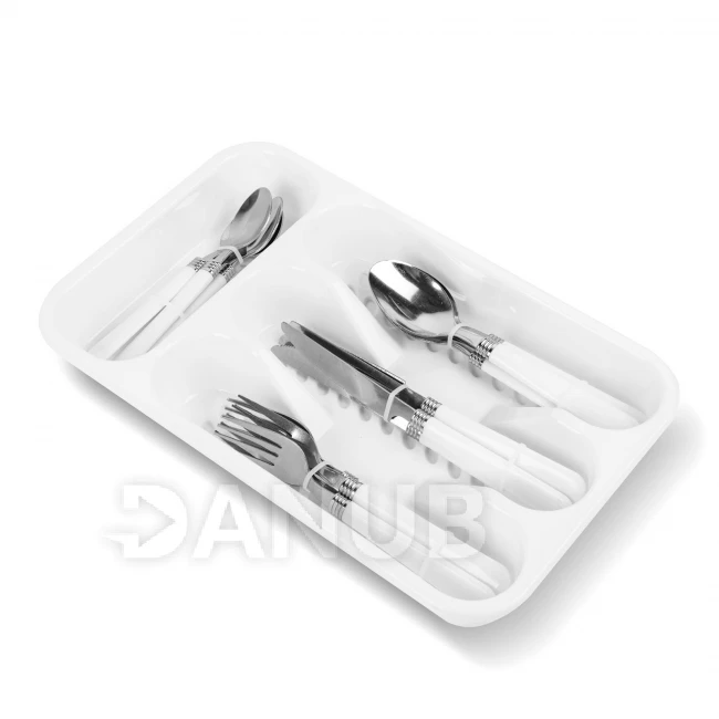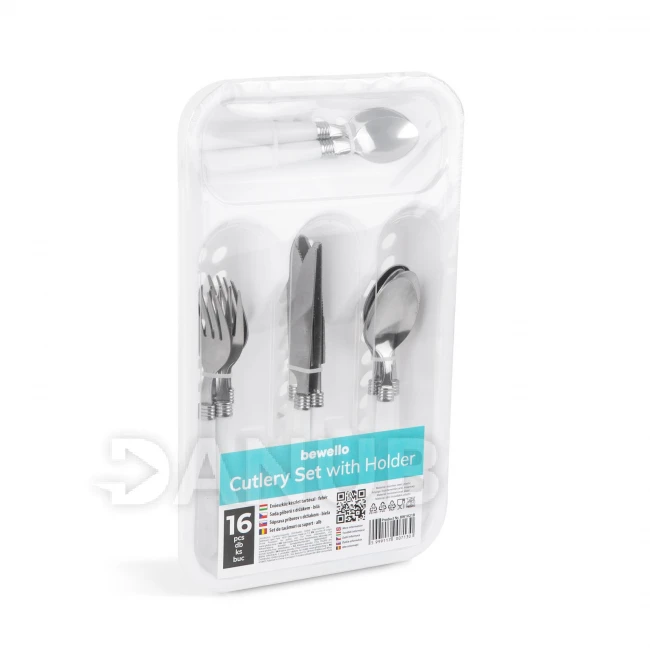 Sada příborů s držákem - bílá - 16 částí - 32,7 x 19,5 x 4,7 cm
