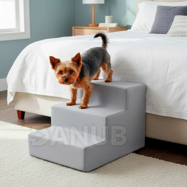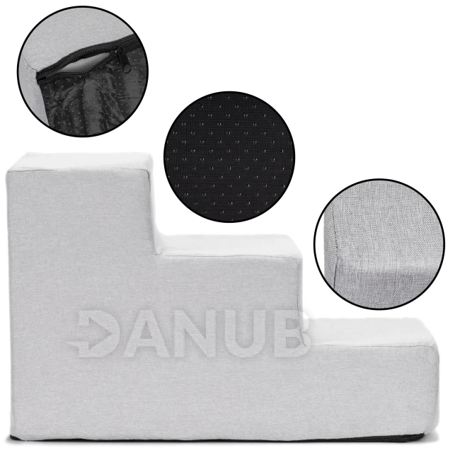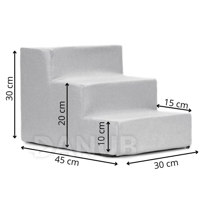 Schůdky pro psy - 45x30x30 cm - 3 schody - světle šedé