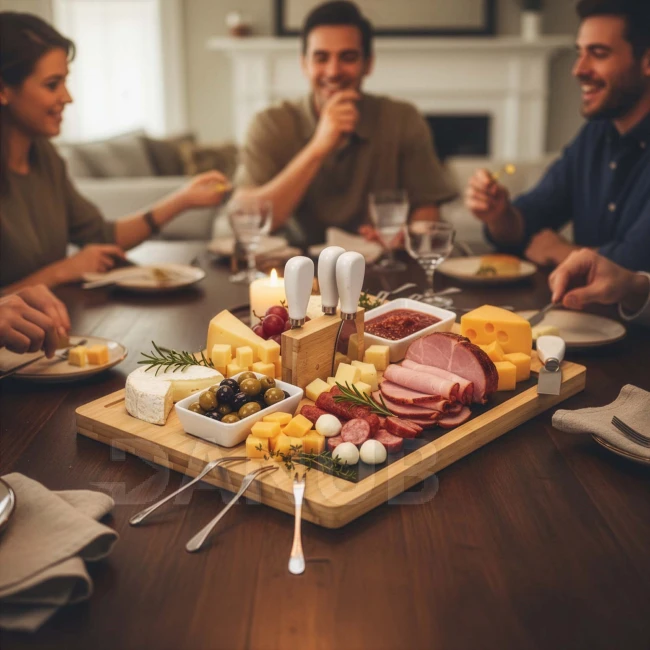 Servírovací deska na občerstvení - 40x30 cm -14-dílná sada - bambus