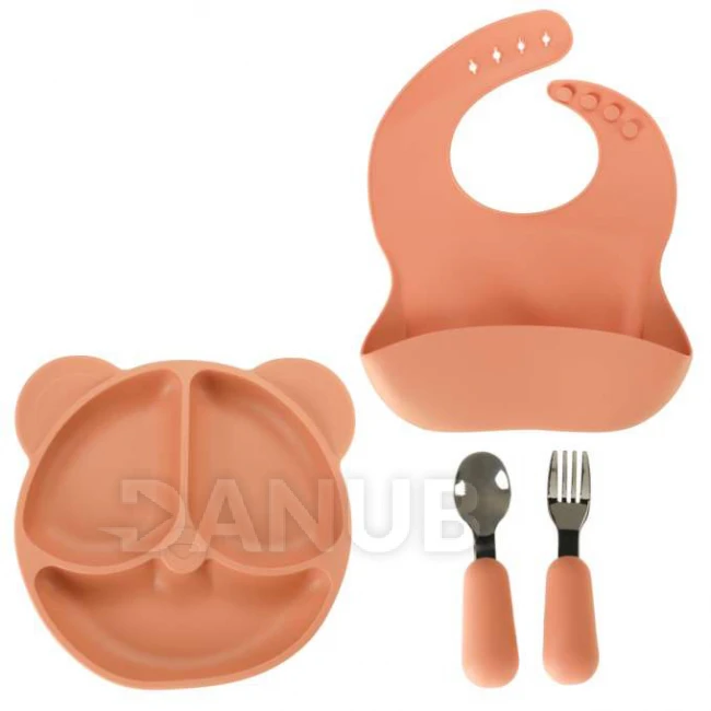 Silikonové dětské nádobí - medvídek - oranžový - 4ks
