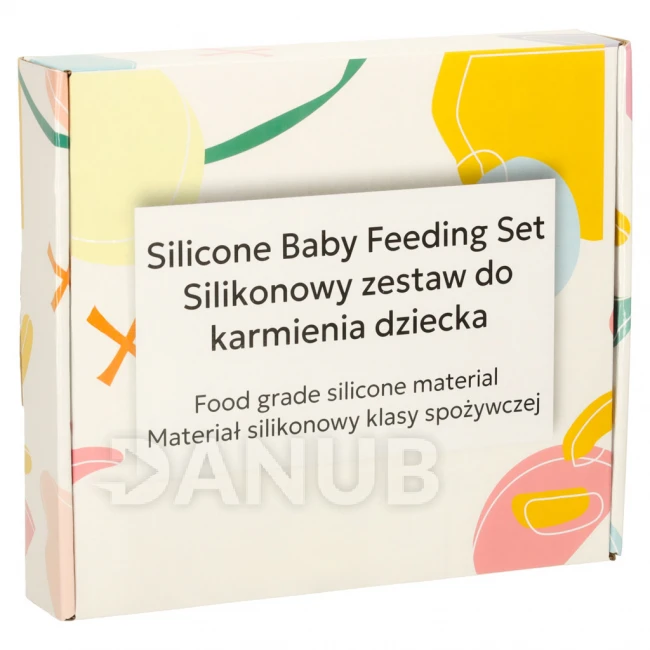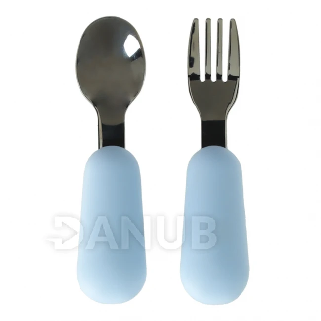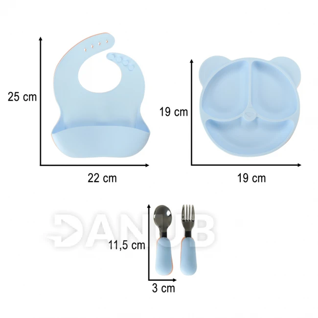Silikonové dětské nádobí - medvídek - světle modré - 4ks