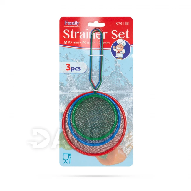 Souprava kovového sítka pro domácnost se 3 různými velikostmi. Není vhodné pro filtrování paliva a jiných chemikálií.