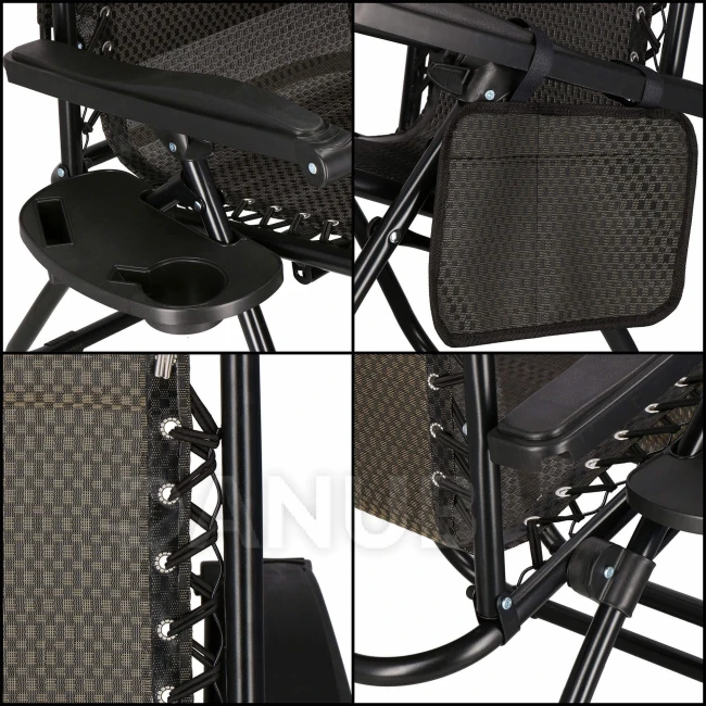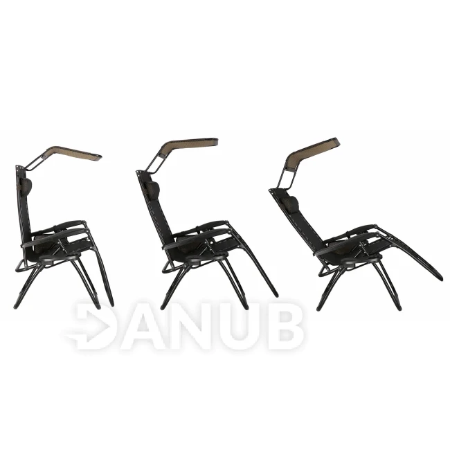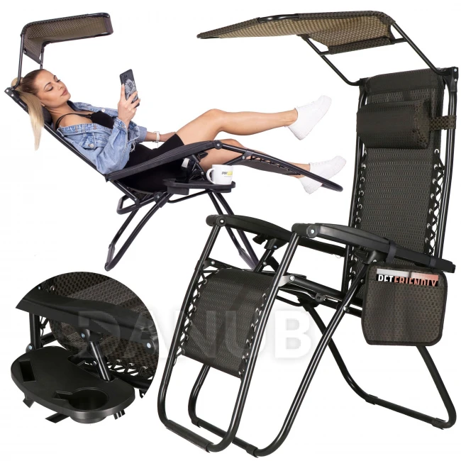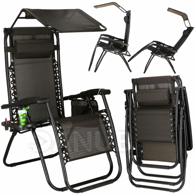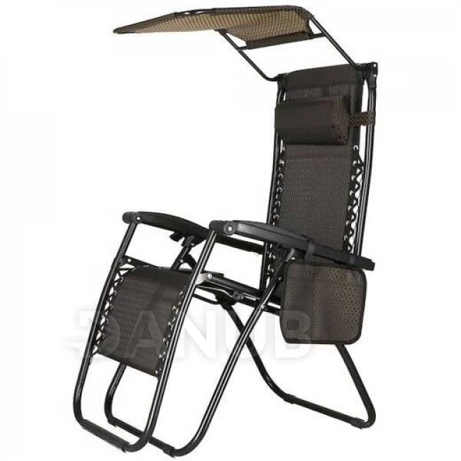 Skládací zahradní křeslo se stínítkem - hnědá/černá/béžová