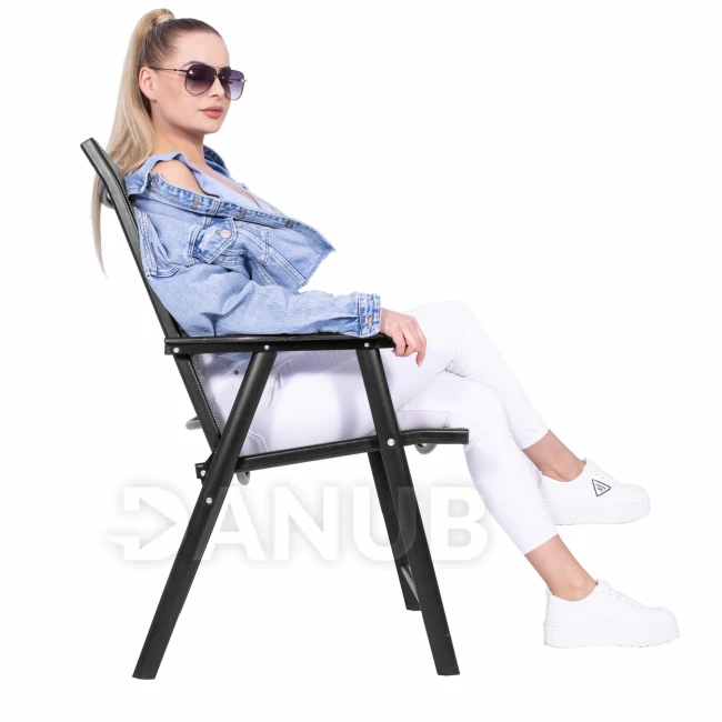 - Obloukové prvky za opěradlem a pod sedadlem poskytují pohodlné rukojeti, které usnadňují přenášení složené židle a její rozkládání.