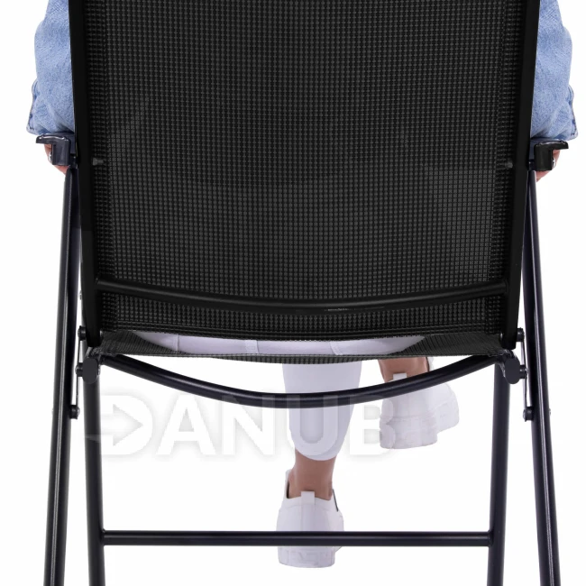 - Obloukové prvky za opěradlem a pod sedadlem poskytují pohodlné rukojeti, které usnadňují přenášení složené židle a její rozkládání.