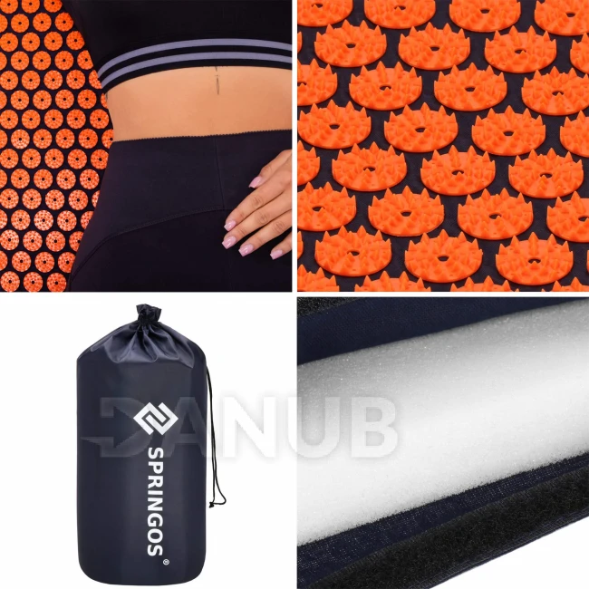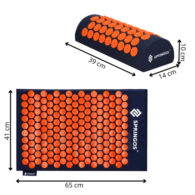 Akupresurní podložka a polštář s masážními hroty - 65x41 cm - tmavě modrá-oranžová