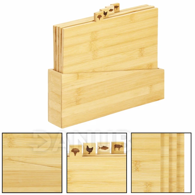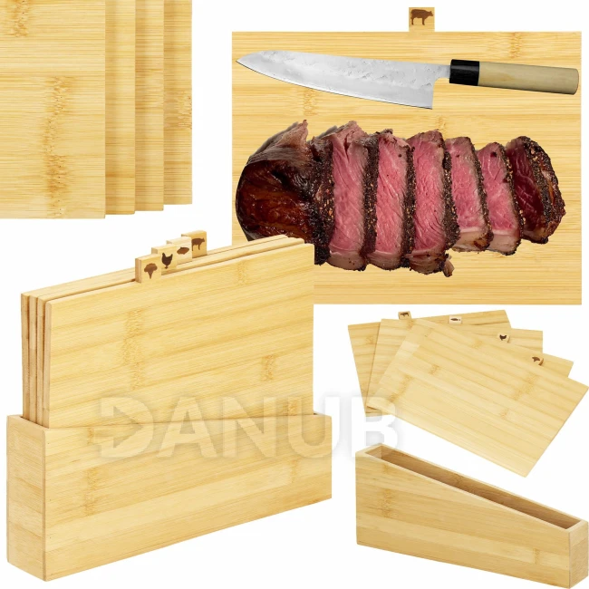 Bambusová prkénka na krájení se stojanem - 4 ks