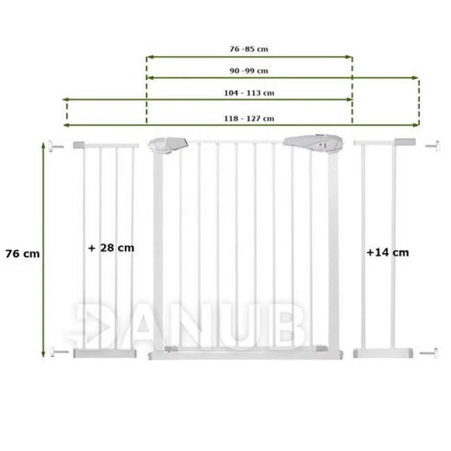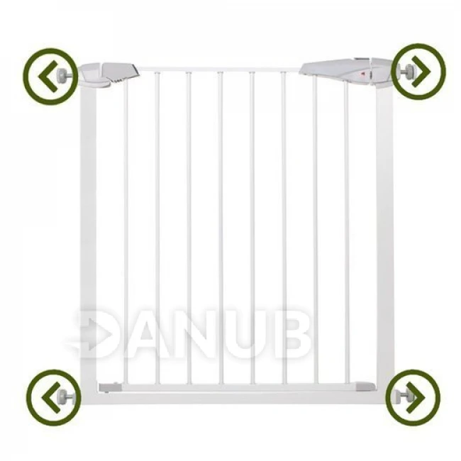Bezpečná, pevná bezpečnostní brána pro děti nebo malé a střední zvířata. Brána může oddělit konkrétní oblasti v domácnosti, které jsou nebezpečné pro vaše děti. Chrání schody nebo dveře před nekontrolovaným vstupem dětí. Brána je upevněna pomocí speciálních šroubů, díky čemuž je montáž a demontáž mimořádně jednoduchá a rychlá. Nevyžaduje vrtání a nezanechává žádné stopy. Nastavení umožňuje montáž brány mezi rámy dveří široké 76 až 113 cm.
