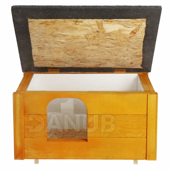 - Domeček stojí na 2 dřevěných nohách, díky čemuž si déle udrží vhodnou teplotu.