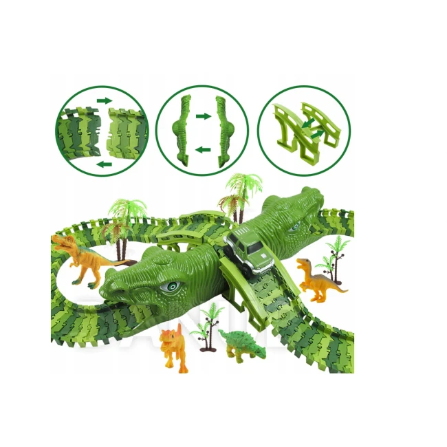 - 2x tunel ve tvaru hlavy dinosaura (výška: 12 cm, délka: 19,5 cm, šířka: 7,5 cm) - každý sestává ze 2 dílů