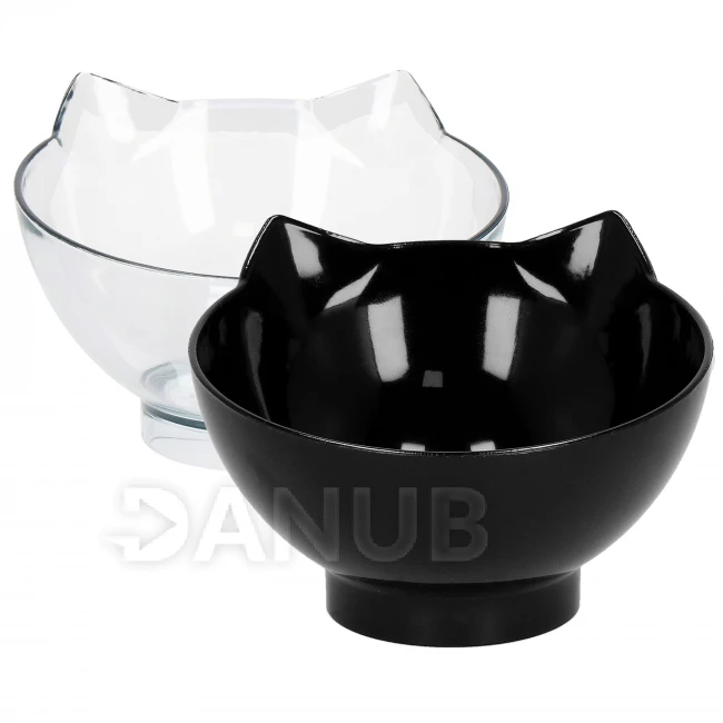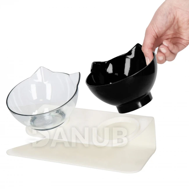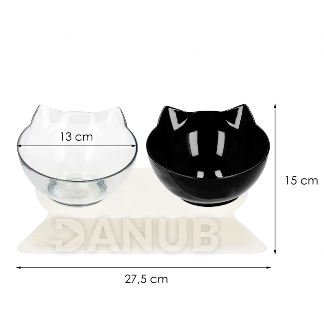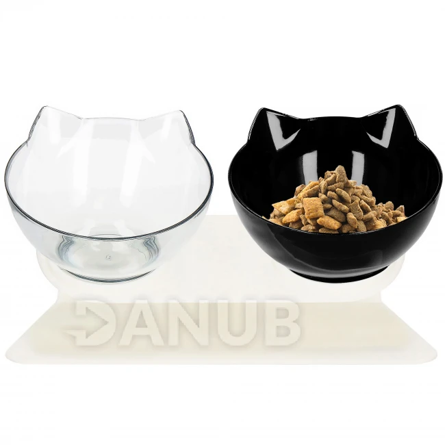 Dvojitá miska pro psa a kočku s protiskluzovým dnem - černá/průsvitná