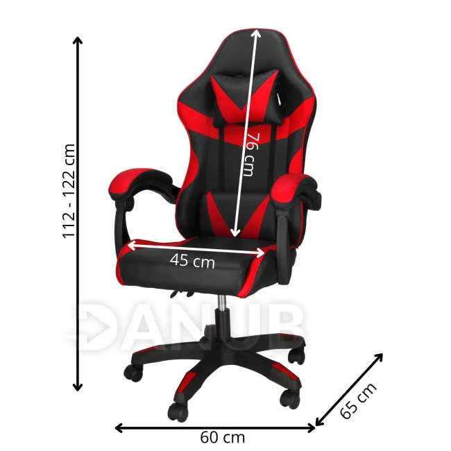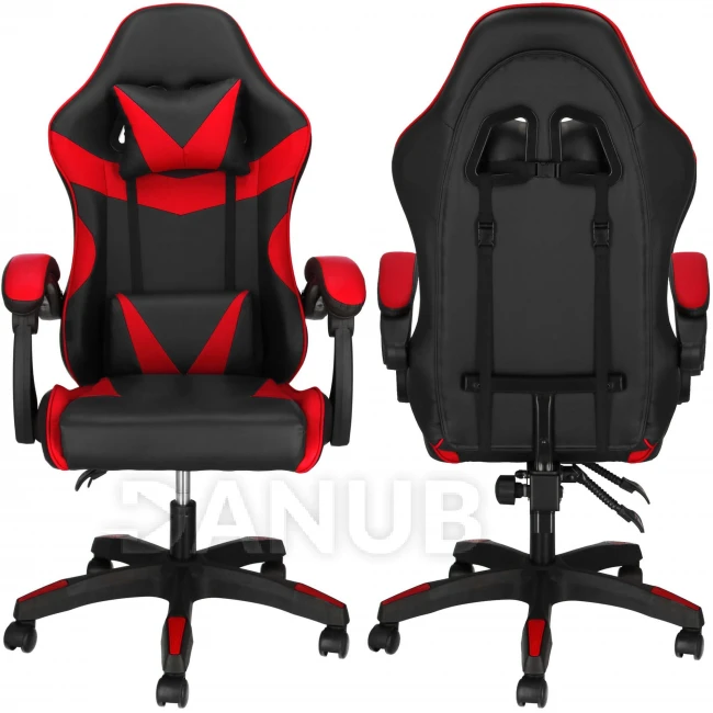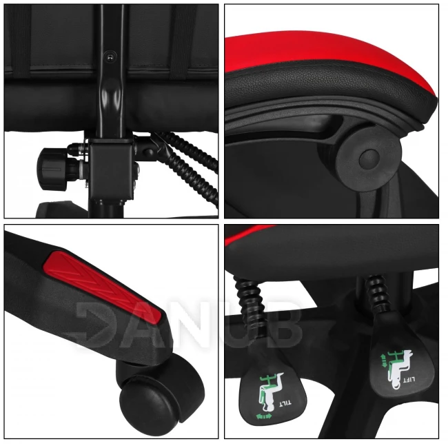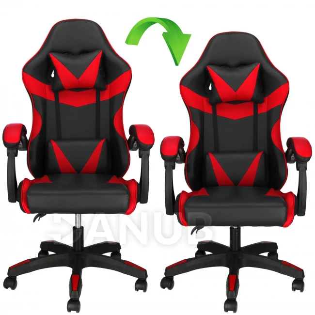 Herní/kancelářská židle s nastavitelným sklonem opěradla, otočná - ekokůže - černá/červená