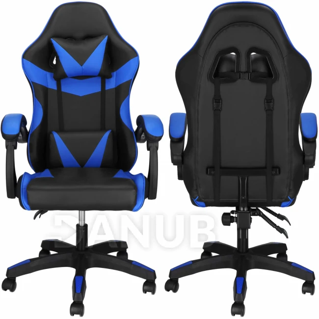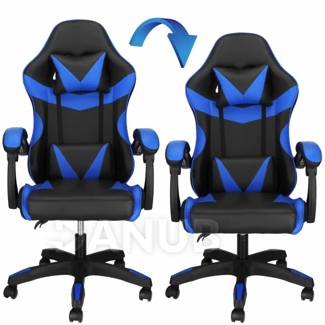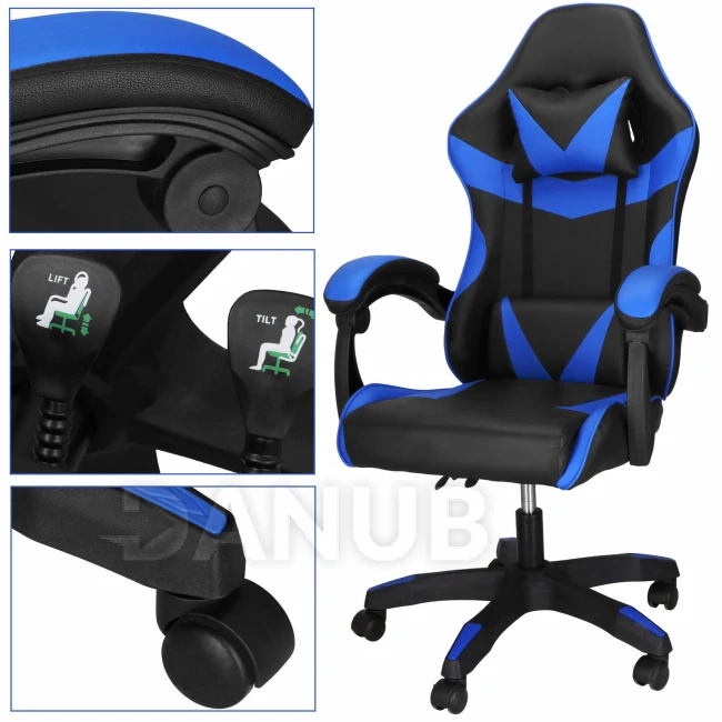 Herní/kancelářská židle s nastavitelným sklonem opěradla, otočná - ekokůže - černá/modrá