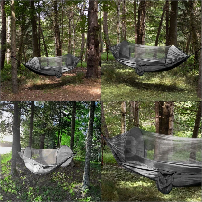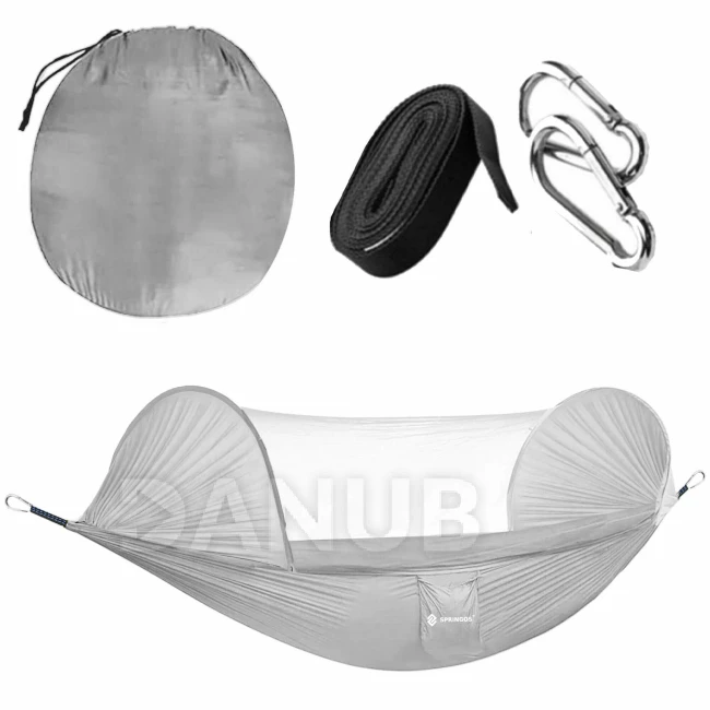 Kempová houpací síť s moskytiérou - 200 kg - 260x140 cm - šedá