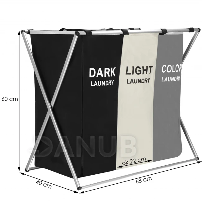 Koš na prádlo trojitý - 146 L skládací černo/béžovo/šedý