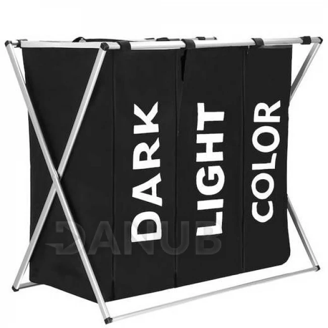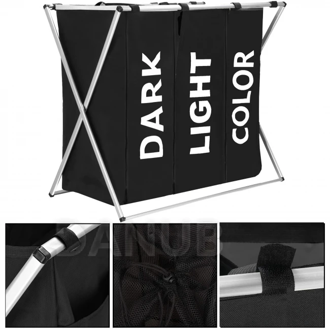 Koš na prádlo trojitý - 146 L - skládací - černý