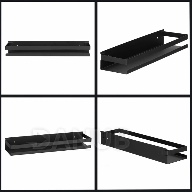 - Sada obsahuje: polici (není nutná montáž), dva šrouby pro montáž do zdi, lepidlo, nálepky pro snadnou instalaci, 2 černé koncovky