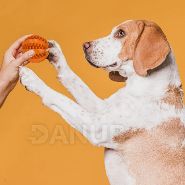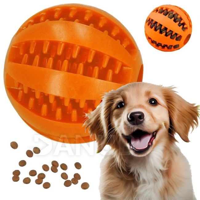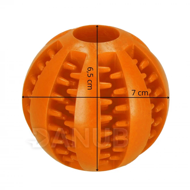 Kousátko pro psa, gumový míček na pamlsky a čištění zubů, oranžový
