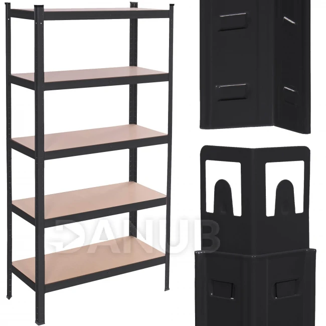 Kovový regál s 5 policemi - 150x75x30 cm - hnědá/černá