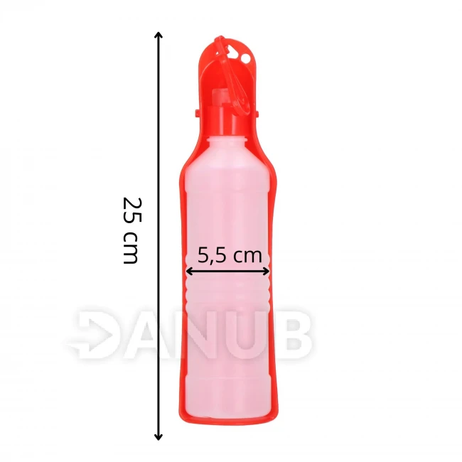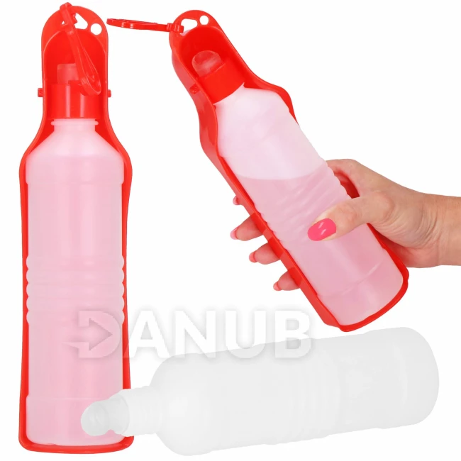 Láhev na vodu pro psy a kočky s napajedlem - 250 ml - červená