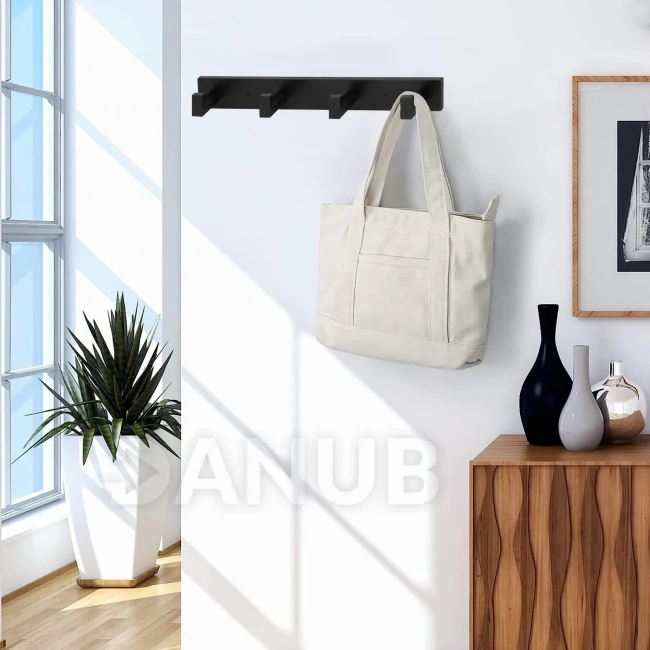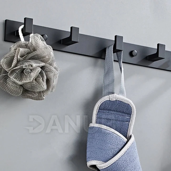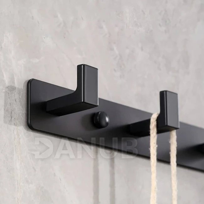 Nástěnný koupelnový věšák se 4 háčky - hliník - černý