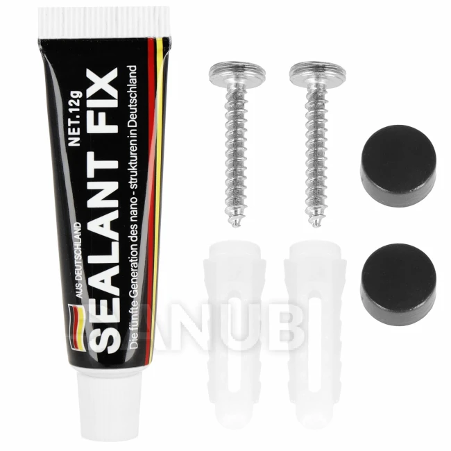 - Souprava obsahuje: věšák, lepidlo, 2 šrouby (28 mm dlouhé), 2 černé hmoždinky, nálepky na pomoc při lepení