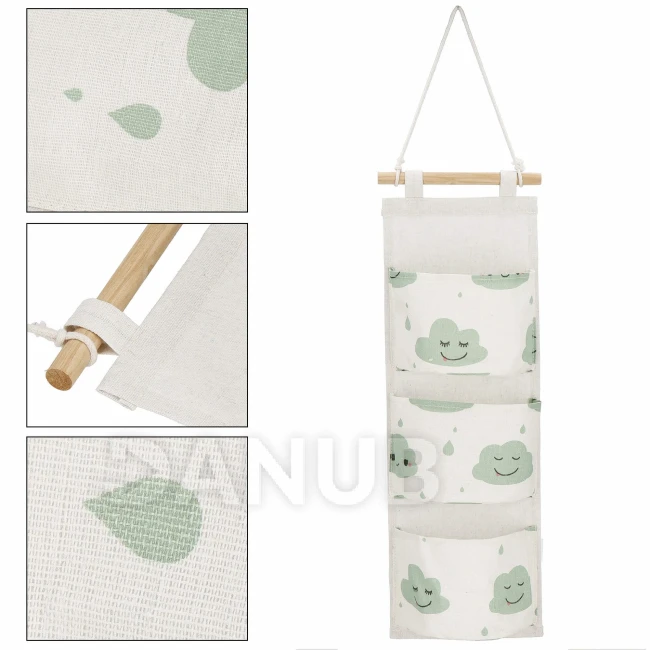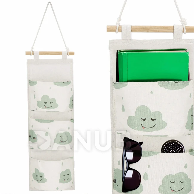 Nástěnný organizér - 3 kapsy - mraky na béžové
