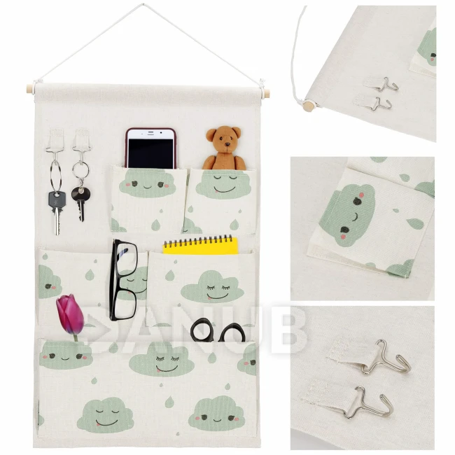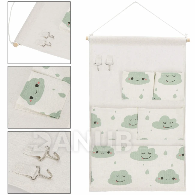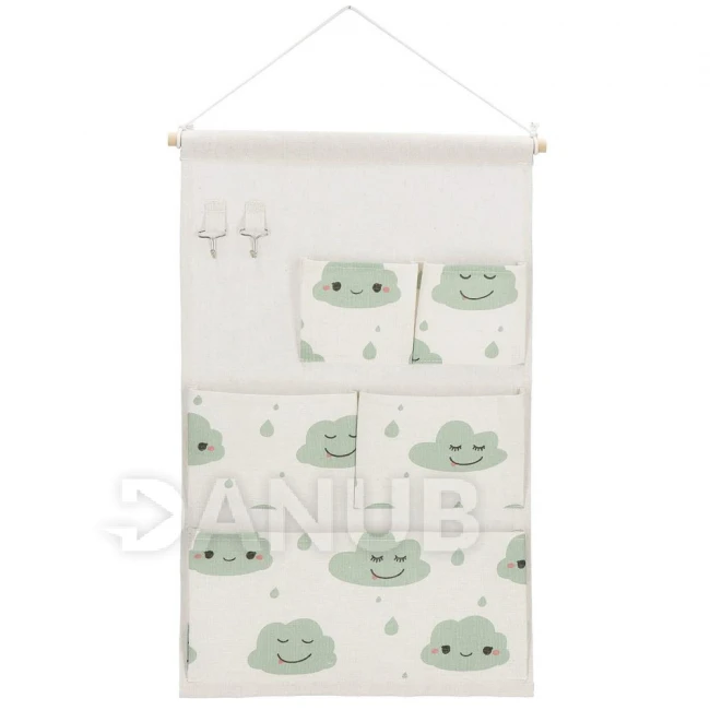 Nástěnný organizér - 5 kapes - mraky na béžové