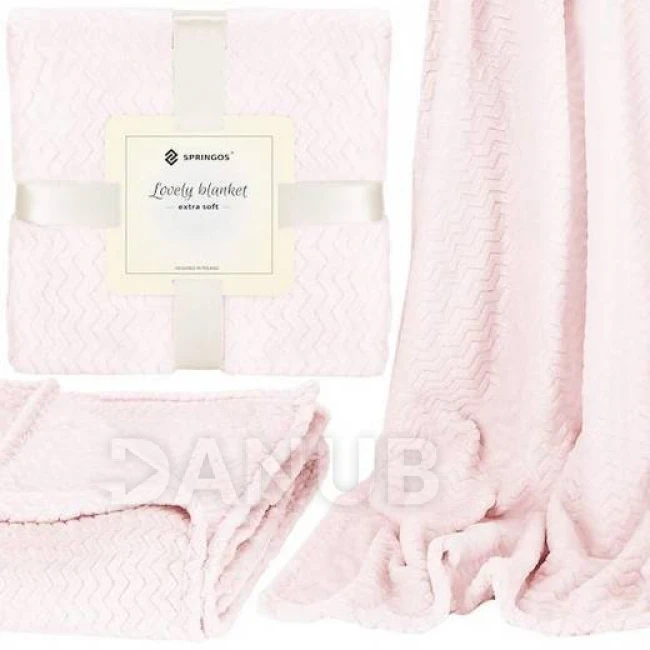 Oboustranná plyšová deka 130x180cm - cik cak - pudrová růžová