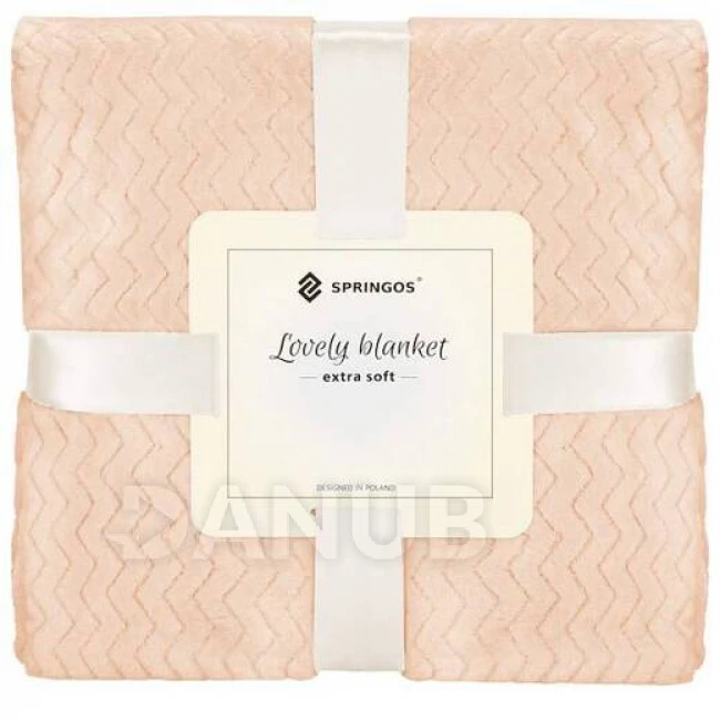 Oboustranná plyšová deka 200x220cm - cik cak - broskvová