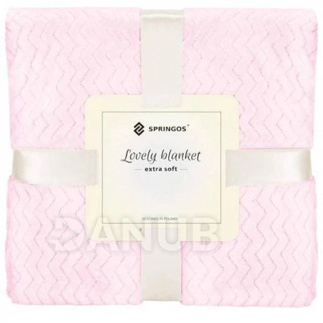 Oboustranná plyšová deka 200x220cm - cik cak - světle růžová