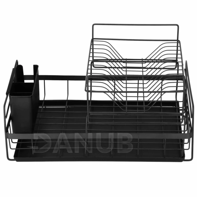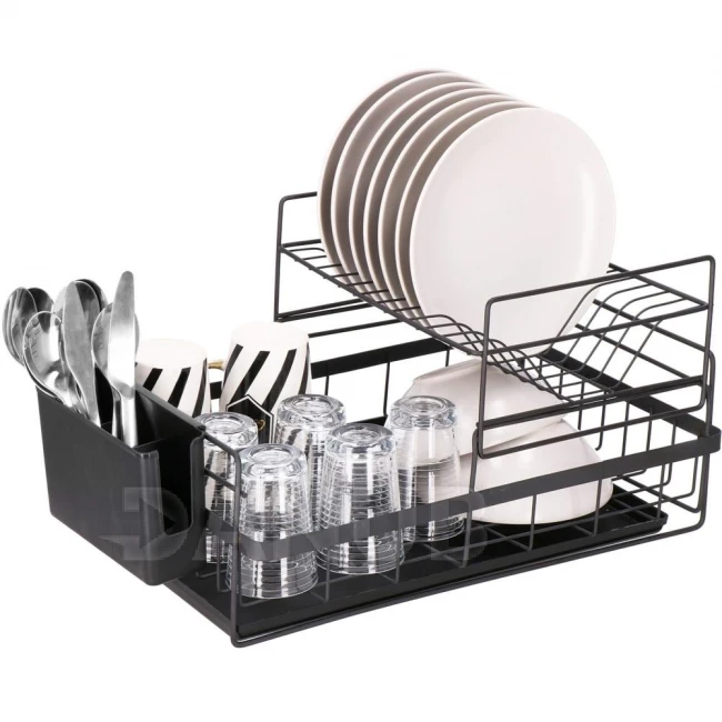 Odkapávač na nádobí a příbory - kovový - patrový - 30x50x24 cm - černý