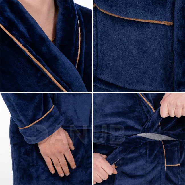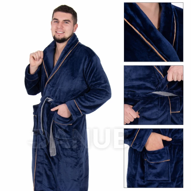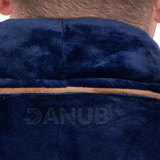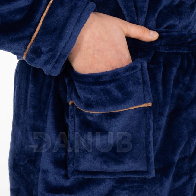 Pánský plyšový župan - L/XL - tmavě modrý s hnědou