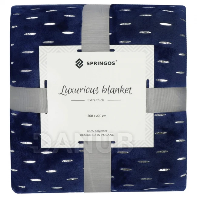 Plyšová deka LUX - 200x220cm - tmavě modrá + stříbrné detaily