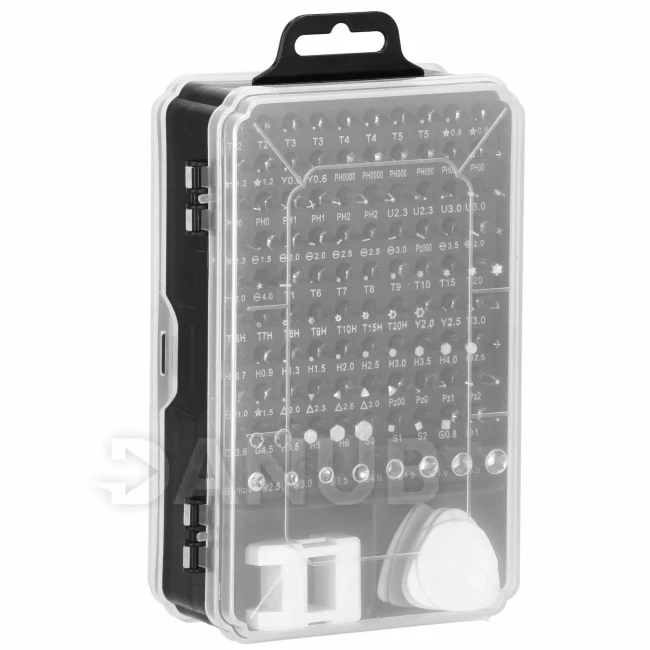 Se sadou nářadí Springos můžete provádět přesné opravy různých typů zařízení: mobilních telefonů, počítačů, notebooků a tabletů, herních konzolí, navigací do auta a mnoha dalších zařízení. Součástí kufříku je hlavní šroubovák, sada 100 bitů a příslušenství jako: pinzeta, úhlové otvírače, nástavce a magnetizér. S touto sadou pro kutily můžete opravit hodinky, brýle, šperky a elektronické přístroje. Šroubování vzácně tvarovaných šroubů přestane být problémem. Námi nabízený set bude užitečný pro profesionály i začátečníky.