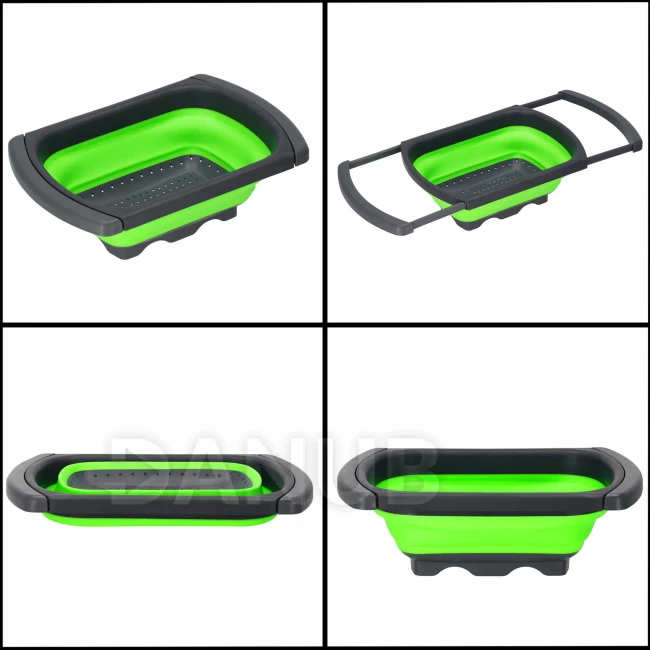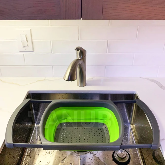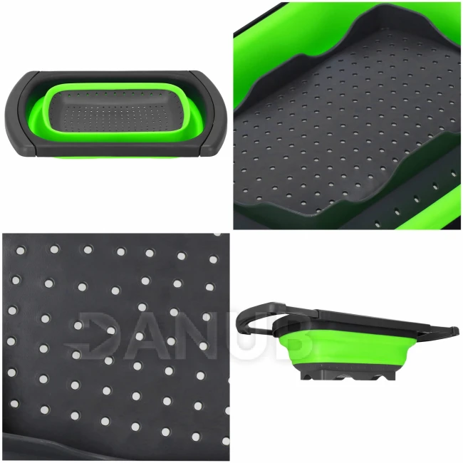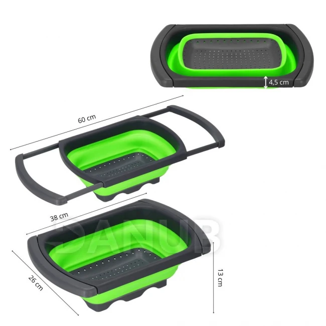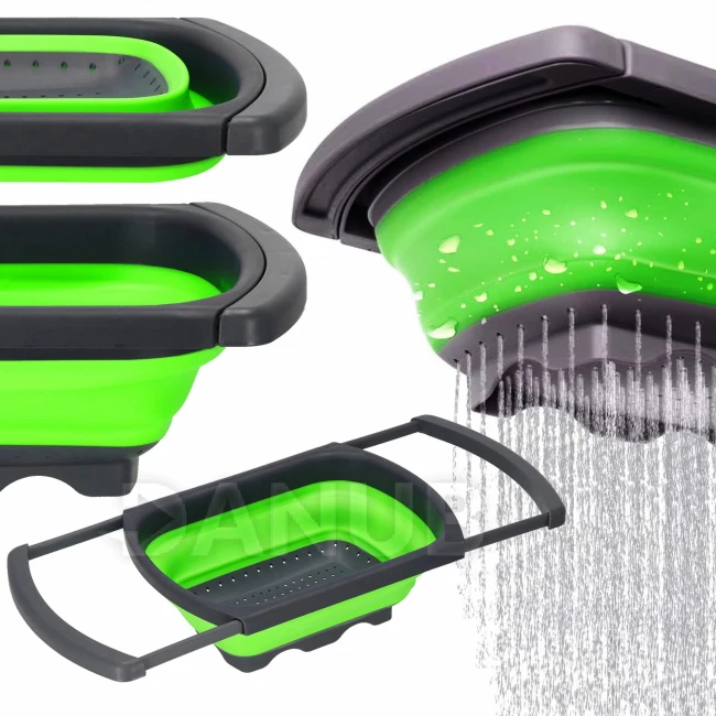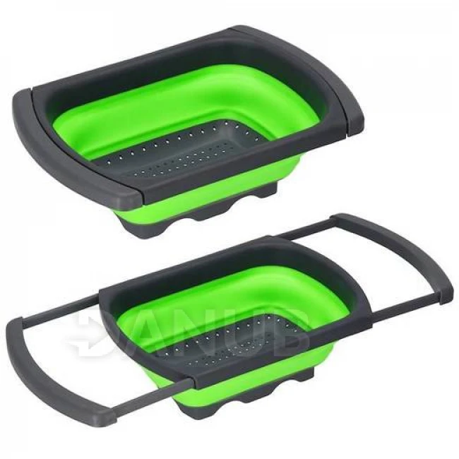 Silikonový cedník na kuchyňský dřez skládací - šedozelený