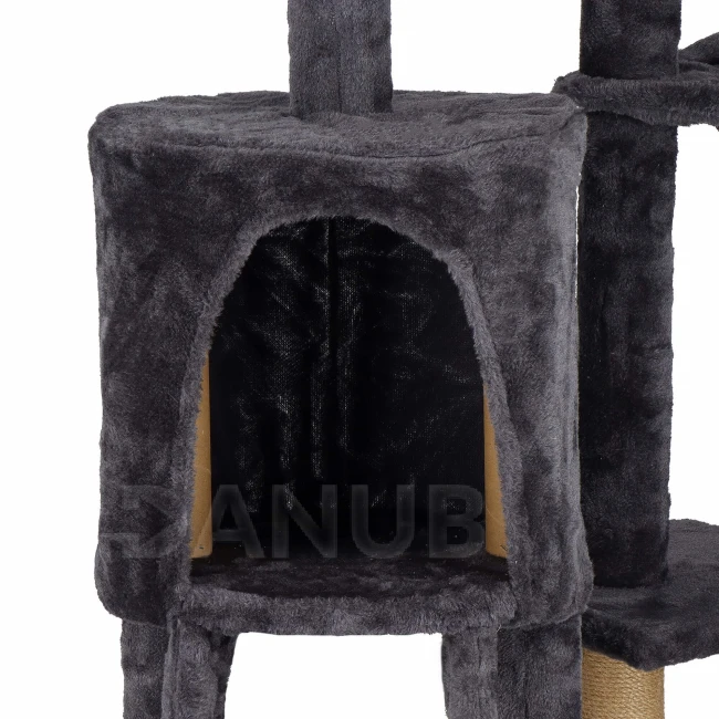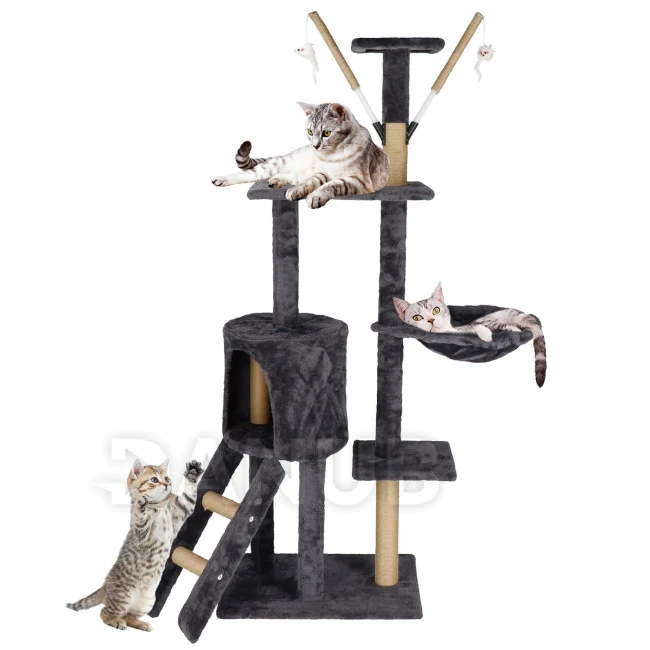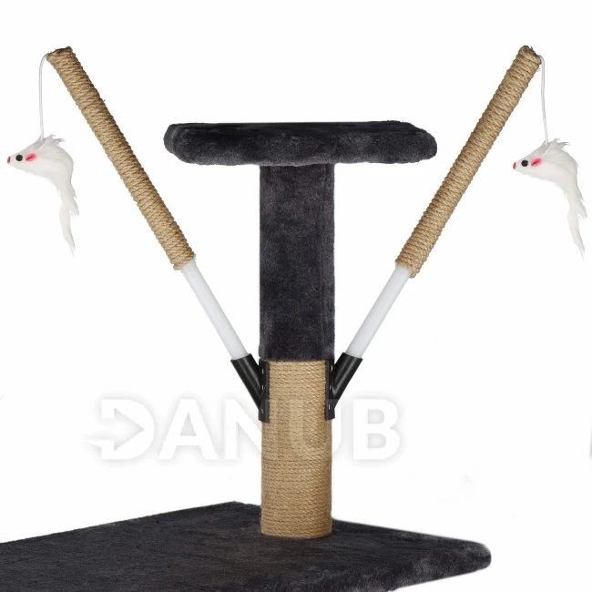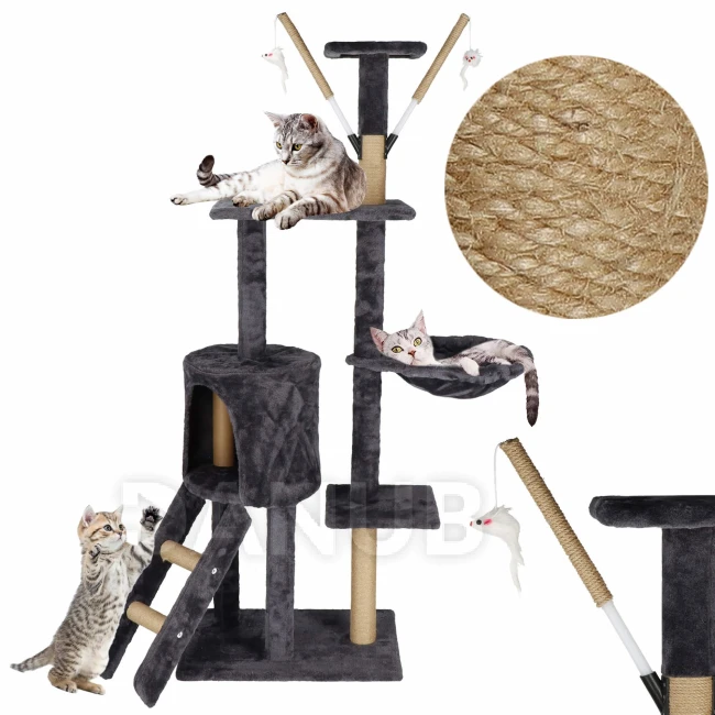 Sisalové škrábadlo pro kočky s hračkami - 6-úrovní - 145 cm - grafitové