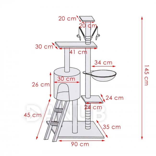 - Žebřík: 45 x 19 x 4,2 cm (výška x šířka x průměr sloupků)