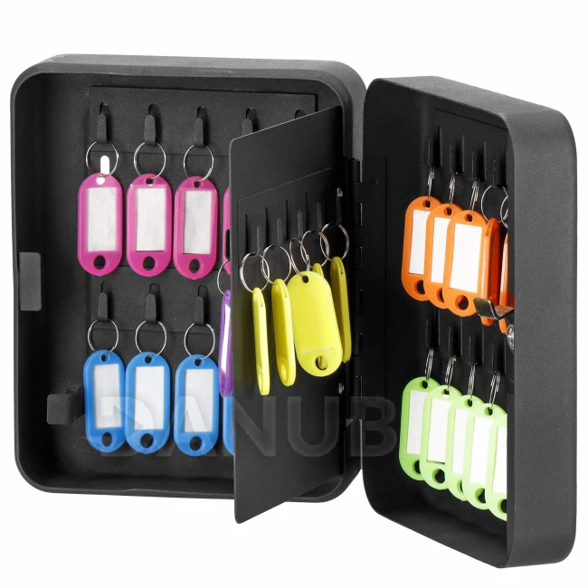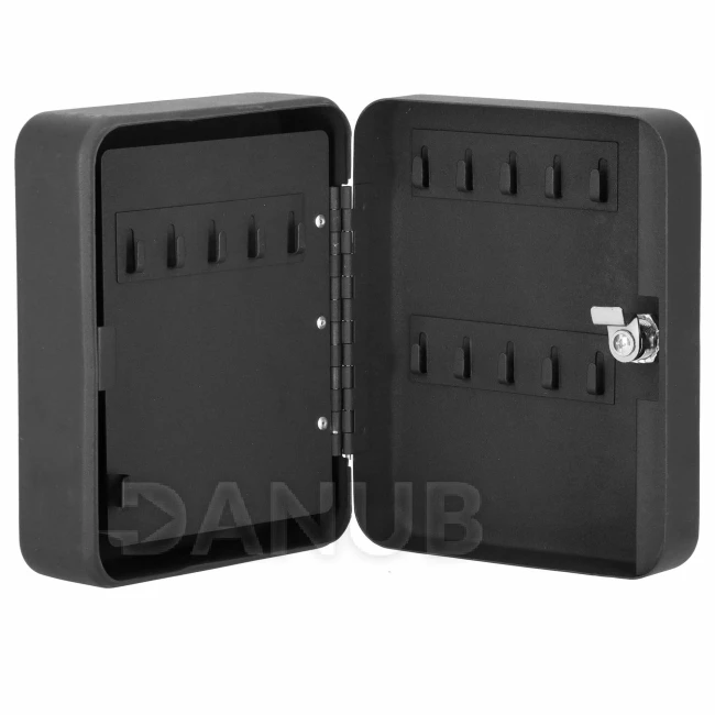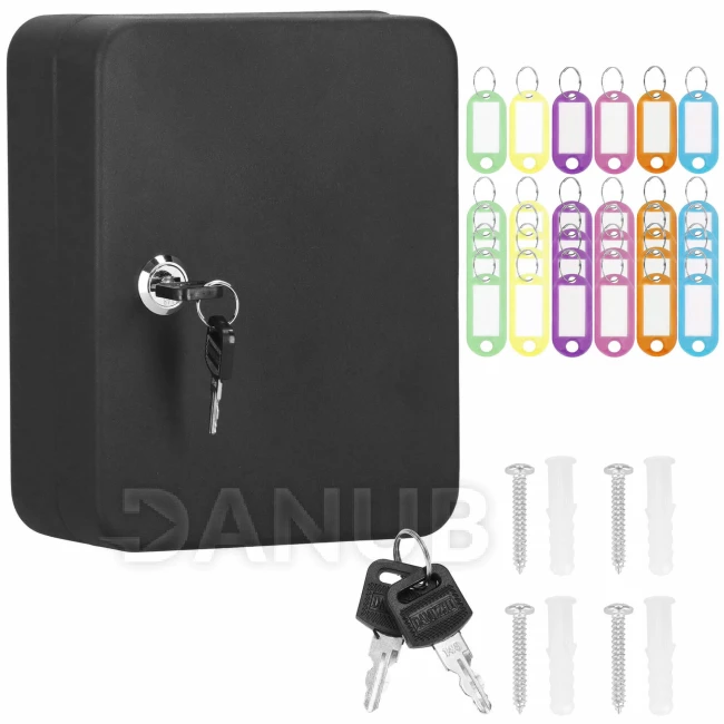 Skříňka na 30 klíčů + klíčenky - kov - černá