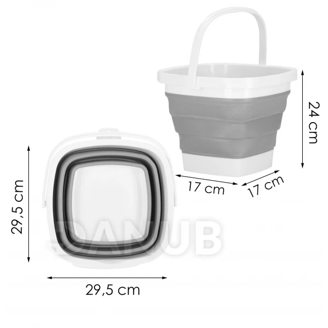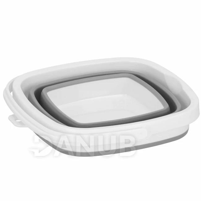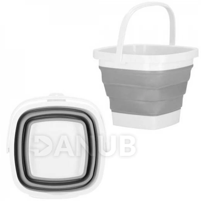 Skládací kbelík silikonové hranaté - 10L - šedo-bílé