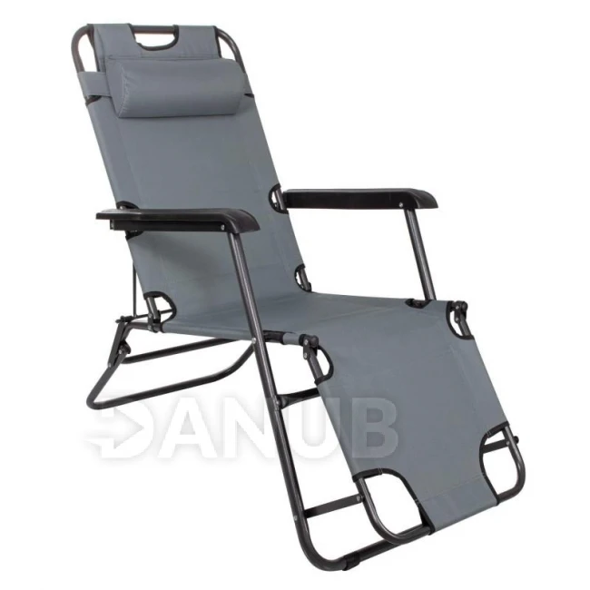 Skládací zahradní lehátko BASIC s opěrkou hlavy - šedá