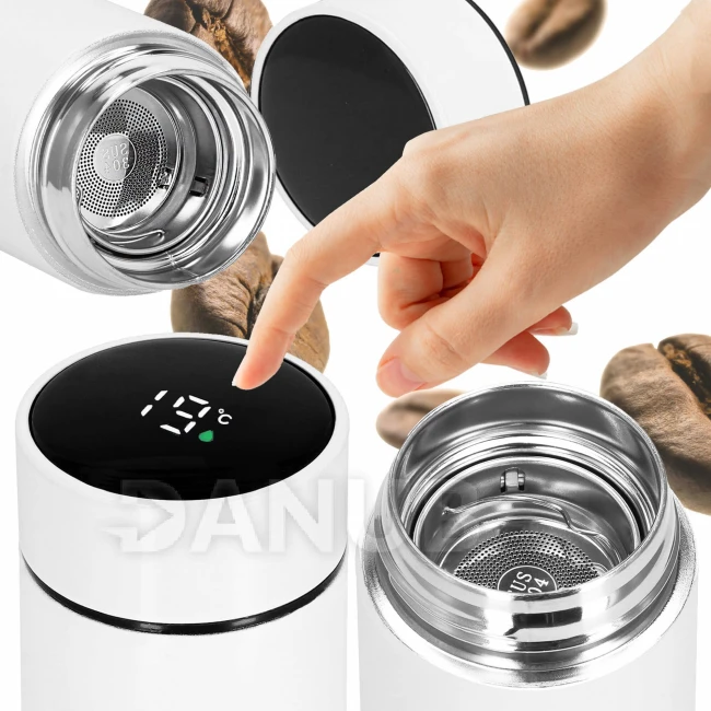Termoska s ukazatelem teploty - nerez - 500 ml - bílá