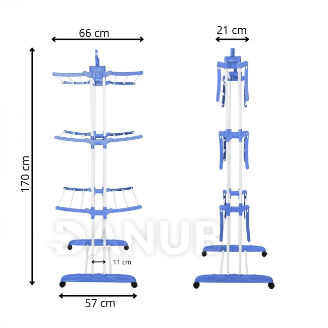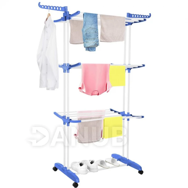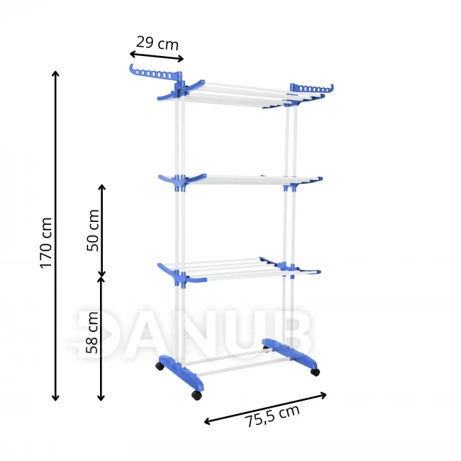 Vertikální sušák prádla na kolečkách - skládací - 170x75,5x57 cm - bílá/modrá