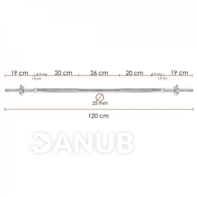 Vzpěračská tyč rovná se závity 25mm - 120cm