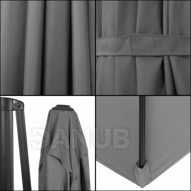 - Šířka materiálu slunečníku: 320 cm *měřeno středem stran, 440 cm (úhlopříčka)