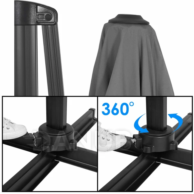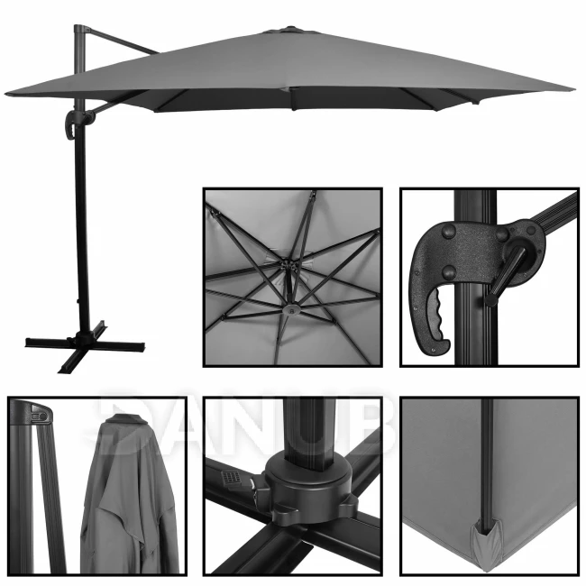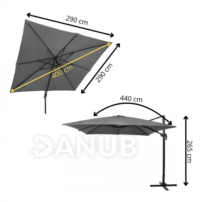 - Rozpětí slunečníku: úhlopříčka: 400 cm, boční: 290 cm