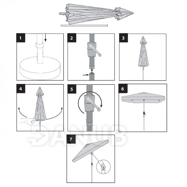 - Rozpětí slunečníku po délce: 195 cm