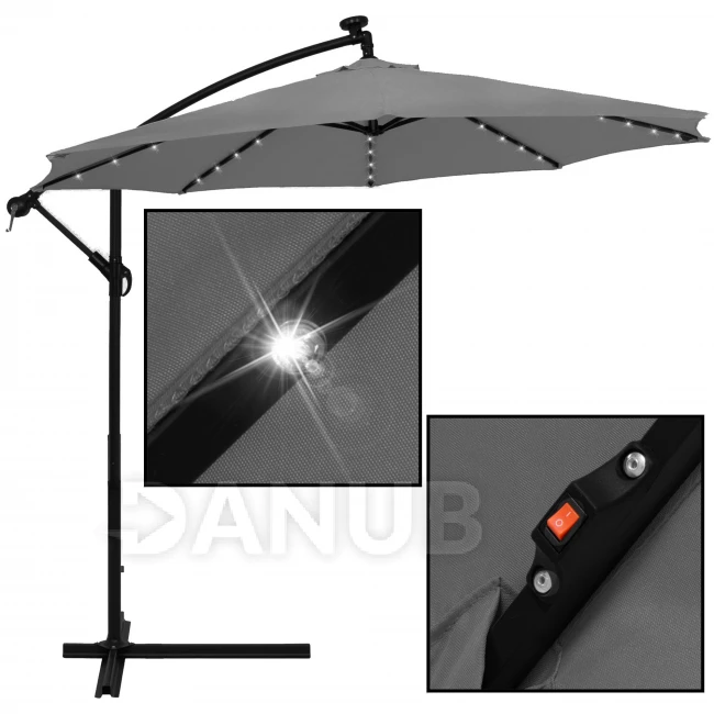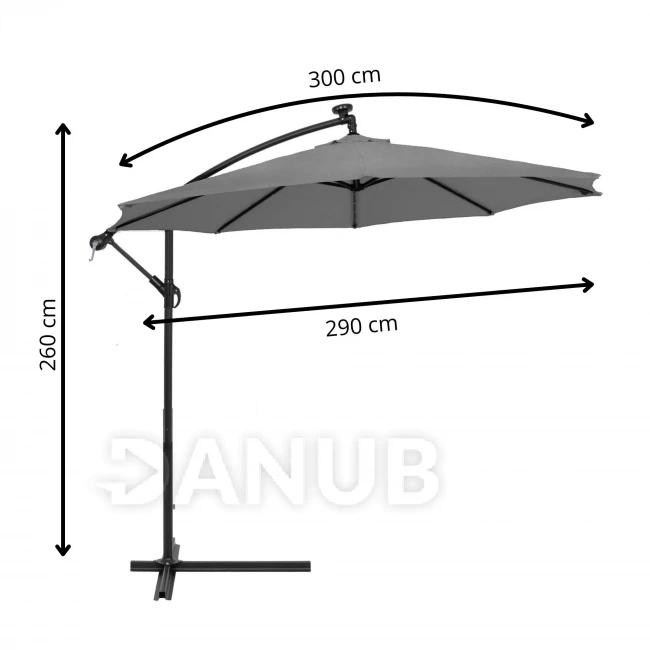 Zahradní slunečník s LED solárním osvětlením - 300cm - grafitový