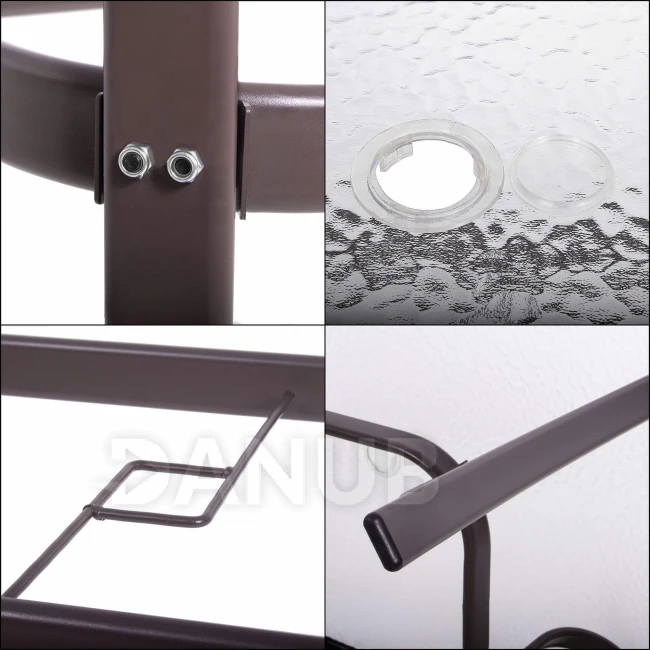 - Materiál: kov s práškovým nástřikem, bezbarvé tvrzené sklo s texturou